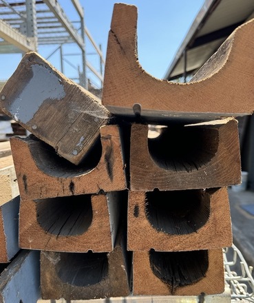 Painted on outside edges, these old growth redwood gutters come from